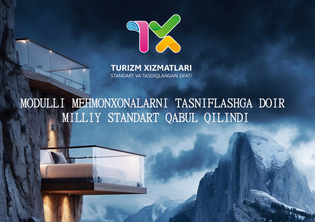 Ekologiya, atrof-muhitni muhofaza qilish va iqlim o‘zgarishi vazirligi huzuridagi Turizm qo‘mitasi qoshidagi STQ 4 “Turizm sohasida standartlashtirish” texnik qo‘mitasi tomonidan O‘zMSt 189:2024 “Turizm xizmatlari. Modulli mehmonxonalar. Tasniflash tizimi” milliy standarti ishlab chiqildi. Mazkur milliy standart O‘zbekiston standartlar institutining 2024-yil 19-iyundagi 20/MSt-son buyrug‘i bilan davlat ro‘yxatiga olindi. Ushbu standart dastlabki amalga kiritilmoqda.